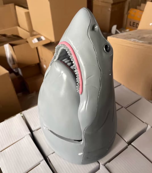 Design: Shark head with realistic teeth and inner mouth